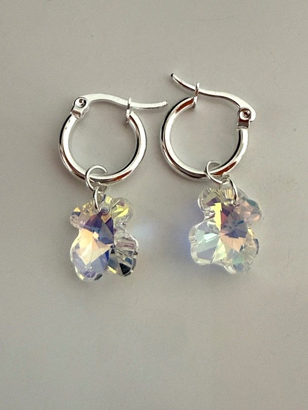 AB1608 Aros argollitas ositos cristal acero blanco