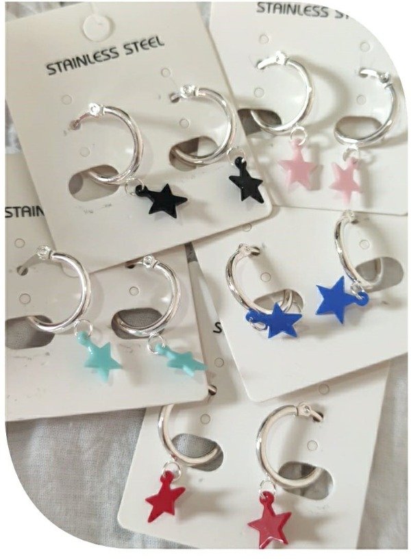 Argollas con dijes colgantes de color.