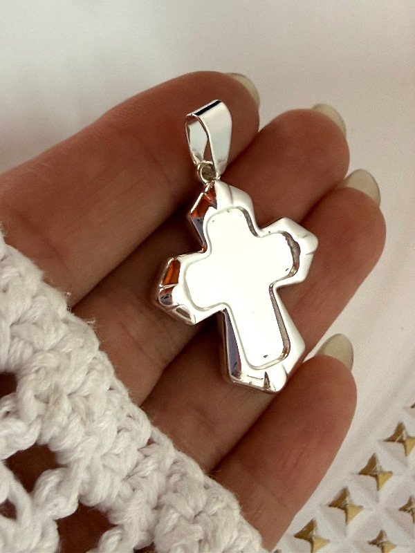 DB535 Dije cruz acero blanco 3 cm