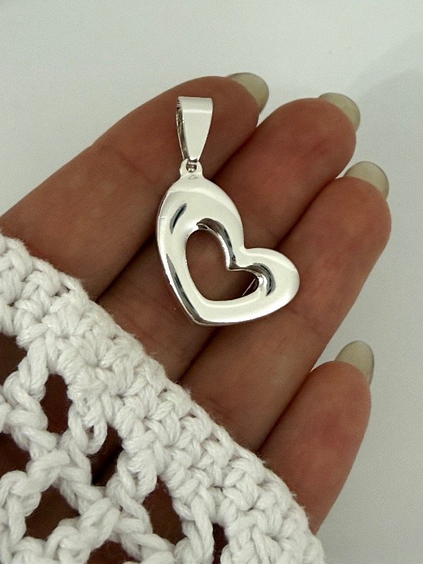 DB539 Dije corazón calado 2,5 cm acero blanco