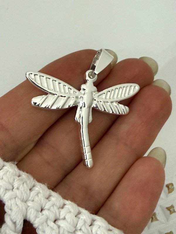 DB551 Dije libélula 4 cm acero blanco