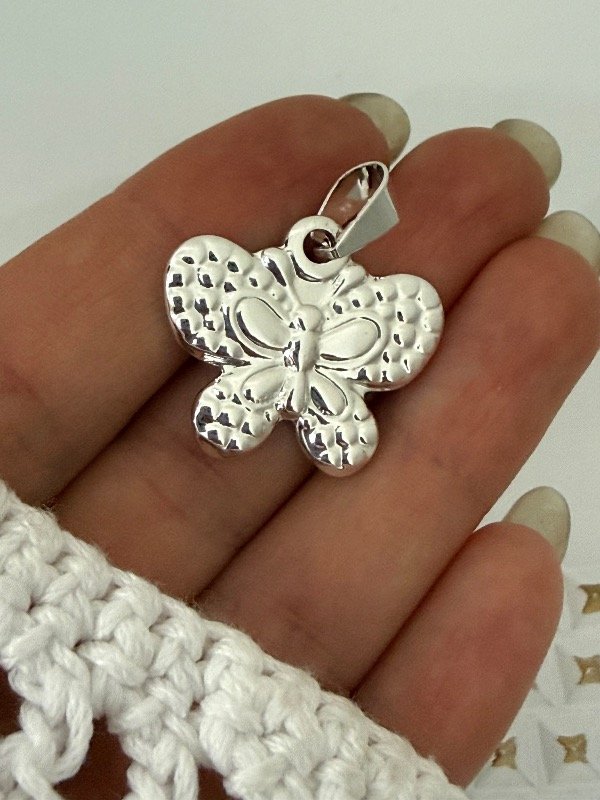 DB559 Dije mariposa 2,5 cm acero blanco