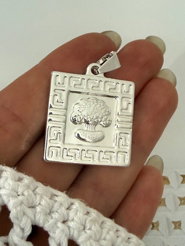 DB560 Dije cuadrado árbol 3 cm acero blanco