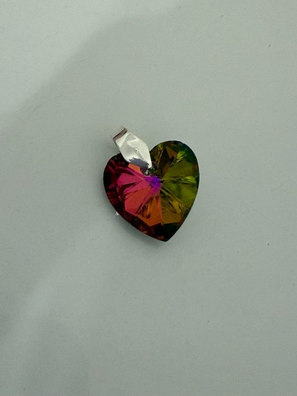 DB571 Dije corazón verde tornasol 1,5 cm acero blanco