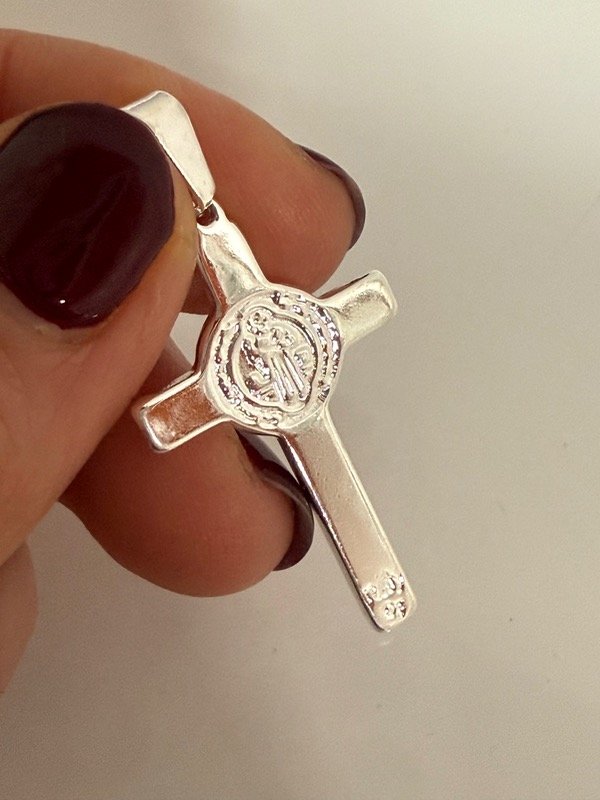 DB618 Dije cruz San Benito 3 cm Acero blanco