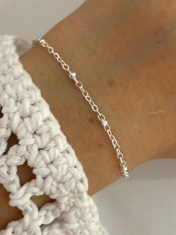 PB1130 Pulsera espejito con mini bolitas acero blanco 19 cm
