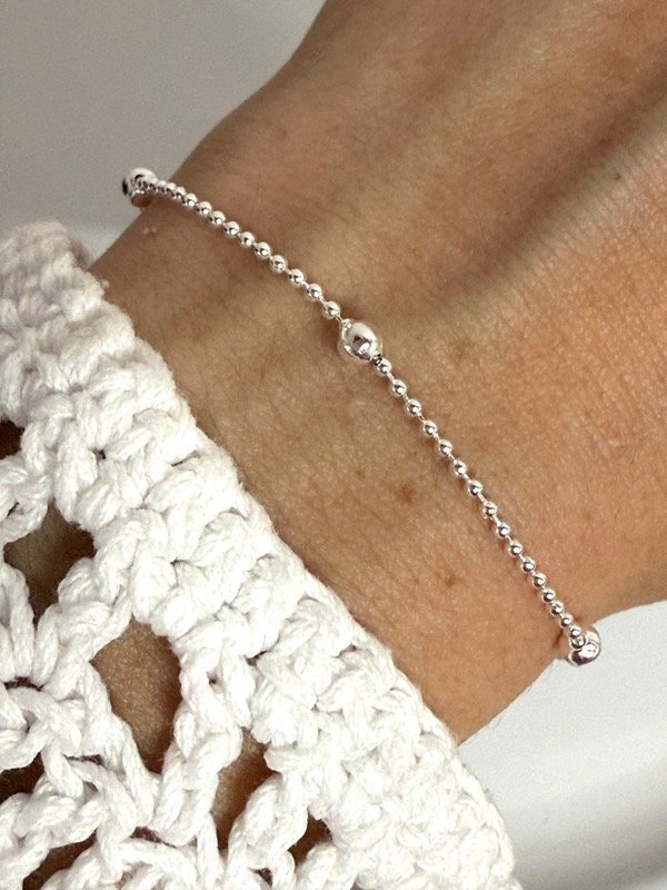 PB1135 Pulsera mini bolitas con bolitas 4mm intercaladas acero blanco 18 cm
