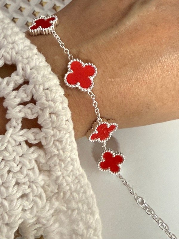 PB1157 Pulsera van cleef roja acero blanco 18 + 5 cm