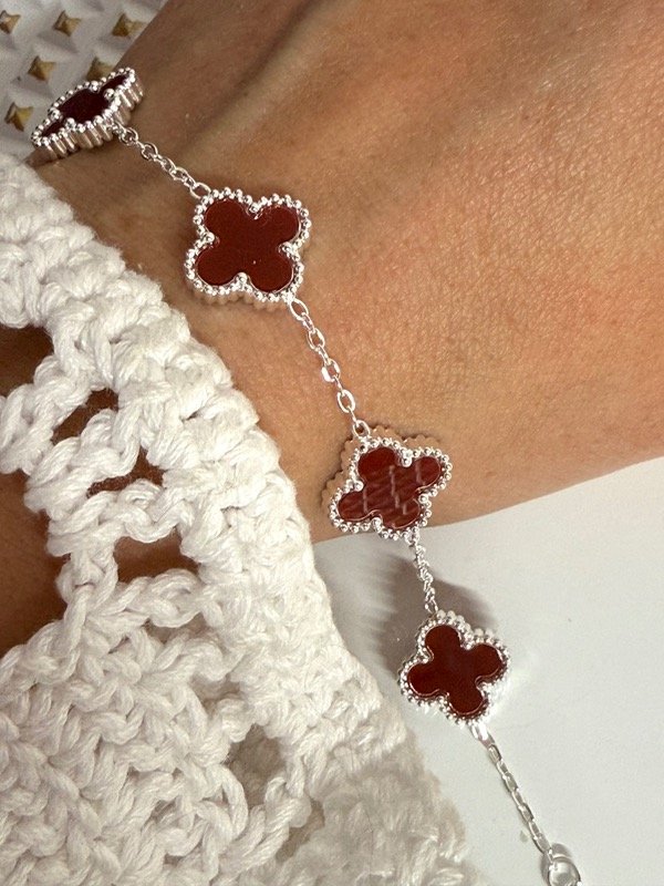 PB1159 Pulsera van cleef bordo acero blanco 18 + 5 cm