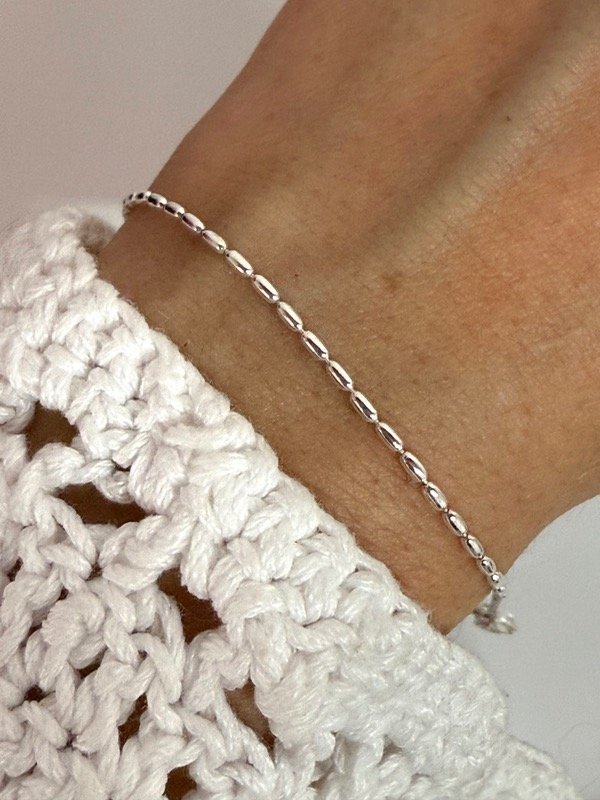 PB1180 Pulsera eslabones ovalados acero blanco 18 cm