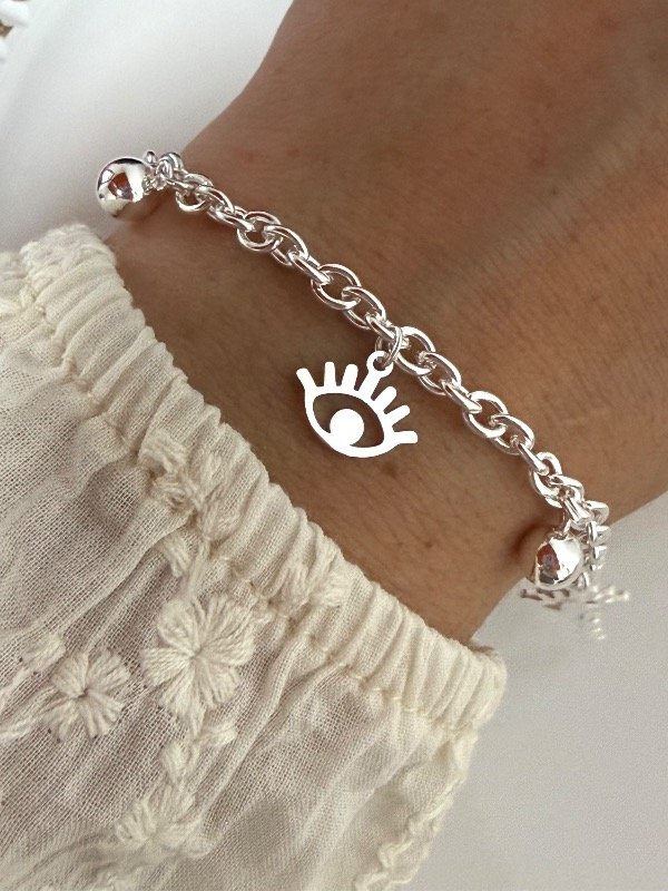 PB1188 Pulsera multidijes bolitas y ojitos 18 cm
