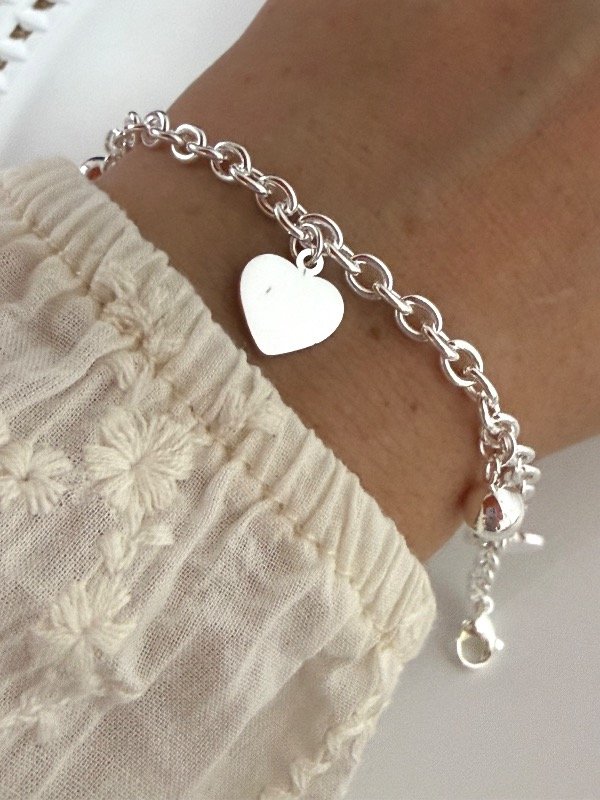PB1189 Pulsera multidijes bolitas y corazón 18 cm