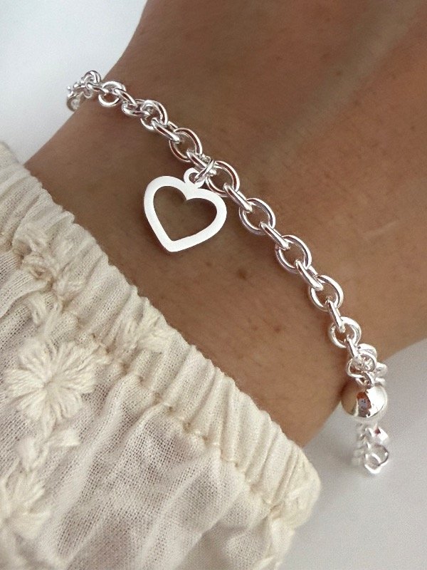 PB1190 Pulsera multidijes bolitas y corazón hueco 18 cm