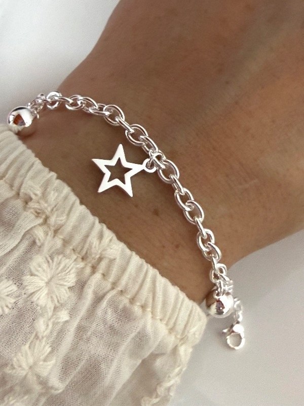 PB1191 Pulsera multidijes bolitas y estrella hueca 18 cm