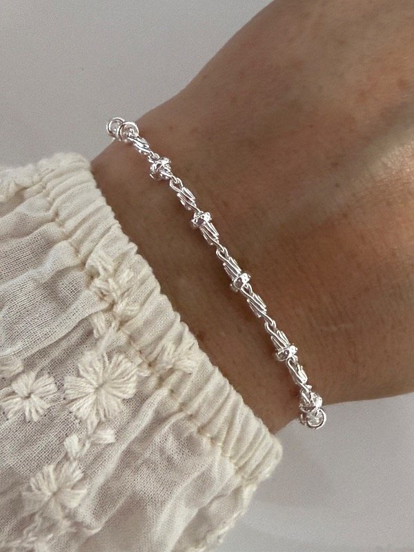 PB1199 Pulsera eslabón flor con bolitas 18 cm