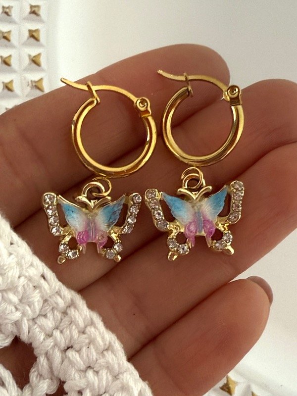 AD419 Aros argollita mariposa acero dorado