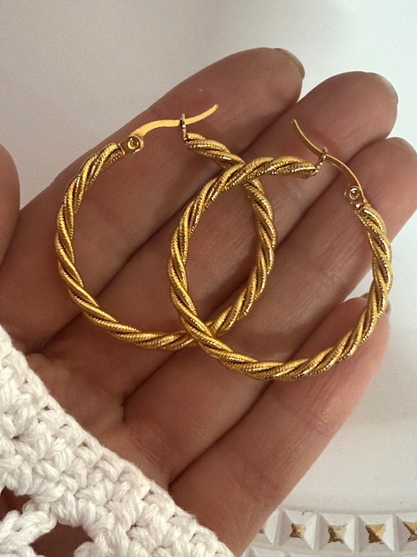 AD472 Aros argolla labradas acero dorado 3,5 cm