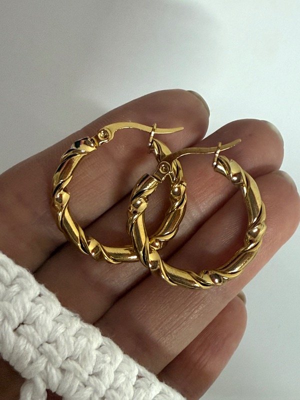 AD478 Aros argollas labradas acero dorado 2,5 cm