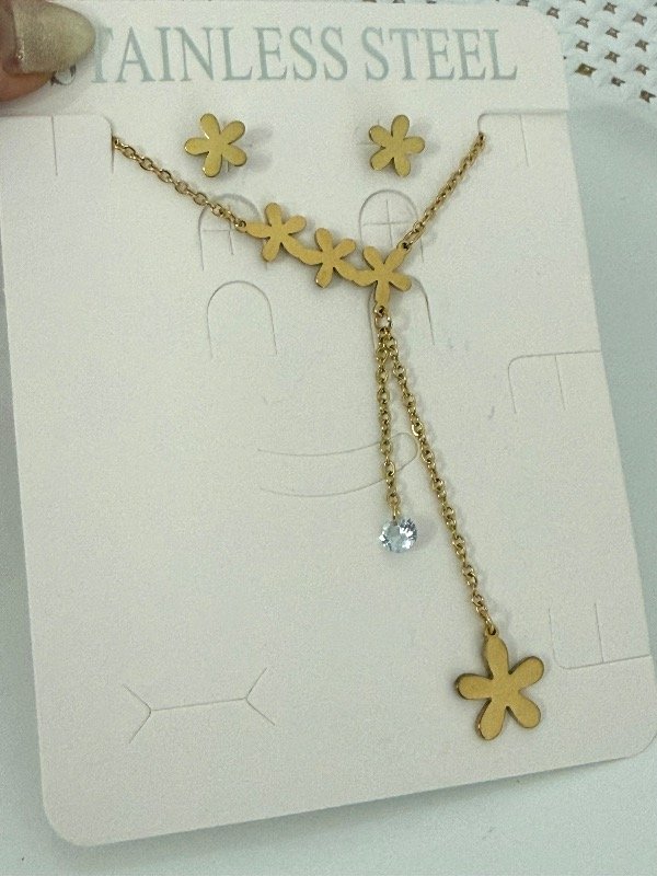 CD176 Conjunto flor collar + aros acero dorado