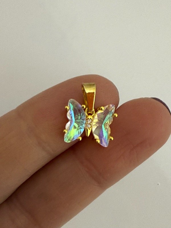 DD64 Dije mariposa tornasolada acero dorado 1 cm