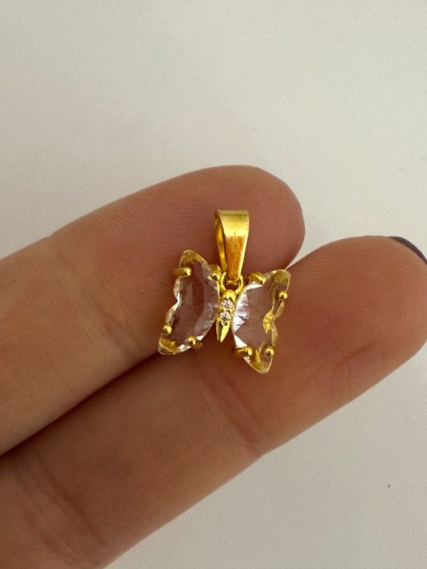 DD65 Dije mariposa cristal acero dorado 1 cm
