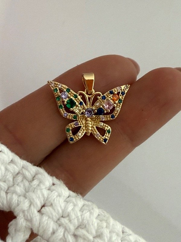 DD82 Dije mariposa con micropave multicolor 2 cm