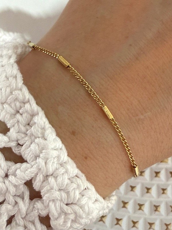 PD133 Pulsera plana con chapitas acero dorado 18 cm