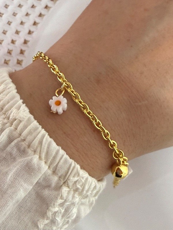 PD227 Pulsera con florcitas y pelotitas 18 cm