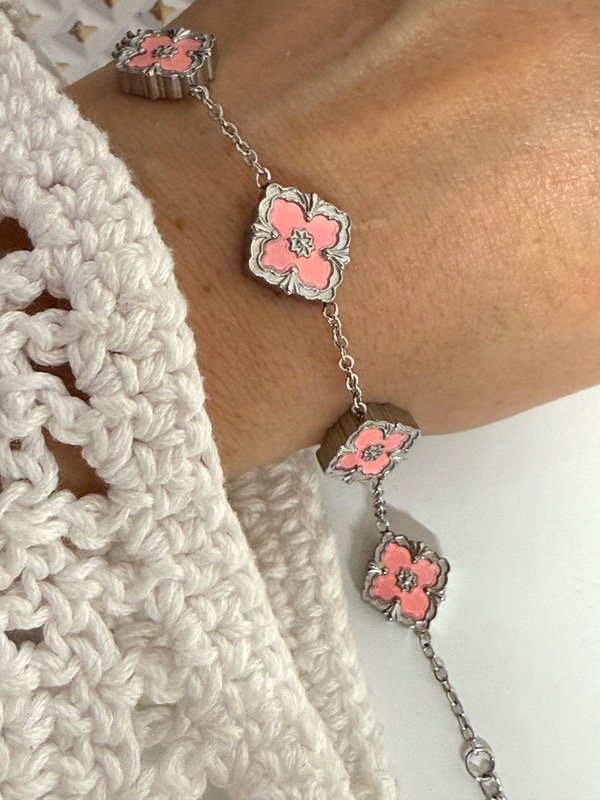 P696 Pulsera flores rosa acero quirúrgico 18+5 cm