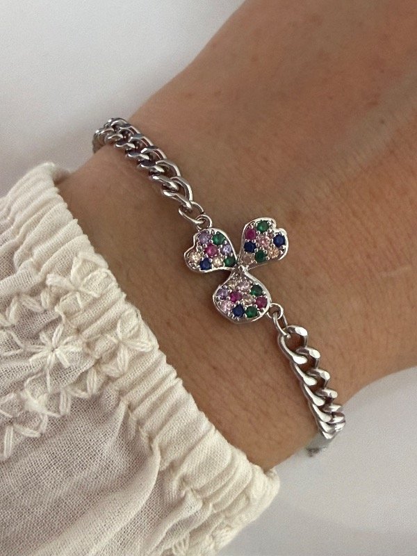 P749 Pulsera trébol con micropave multicolor 19 cm