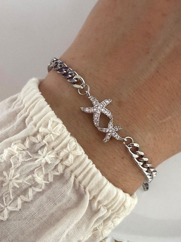 P756 Pulsera doble estrellas con micropave cristal 19 cm