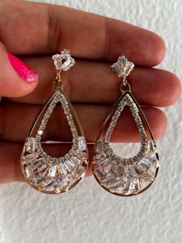 AFF0022 Aros fantasía dorado fiesta colgante strass