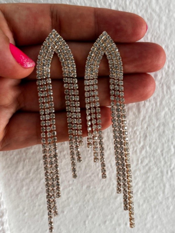 AFF0025 Aros fantasía dorado fiestas colgantes strass