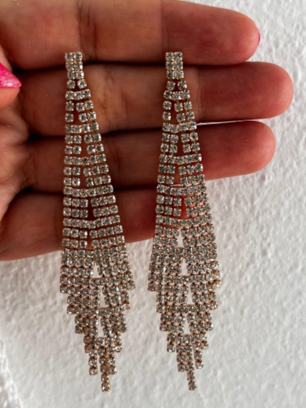 AFF0027 Aros fantasía dorado fiestas colgantes strass