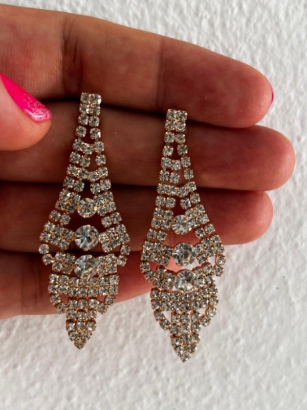 AFF0029 Aros fantasía dorado colgantes fiesta strass