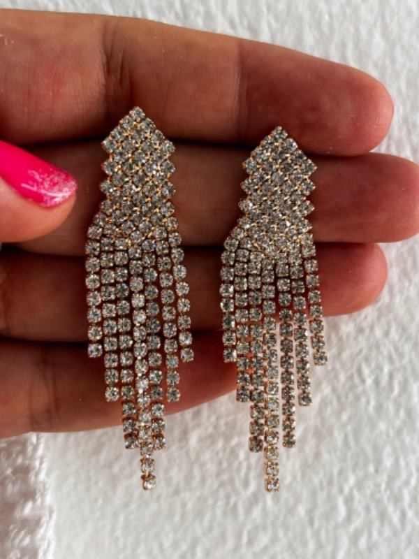 AFF0031 Aros fantasía dorado colgante a fiesta strass