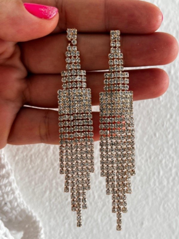 AFF0032 Aros fantasía dorado fiesta colgante strass
