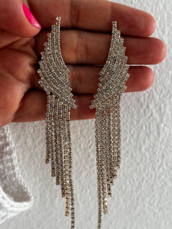 AFF0033 Aros fantasía dorado fiestas colgantes strass