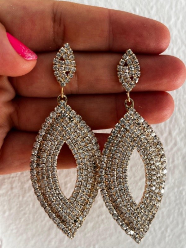 AFF0034 Aros fantasía dorado fiestas colgantes strass