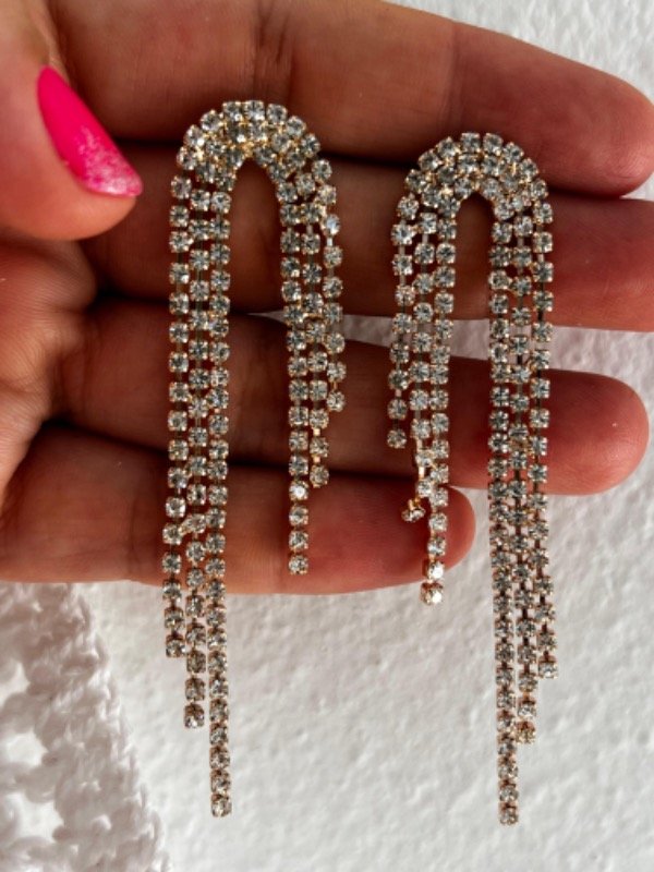 AFF0036 Aros fantasía dorado fiestas colgantes strass