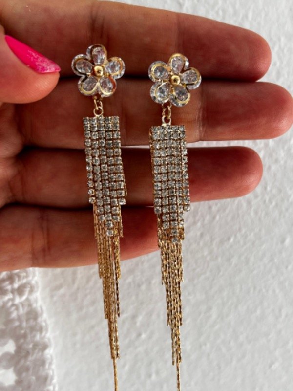 AFF0039 Aros fantasía dorado fiestas colgantes strass